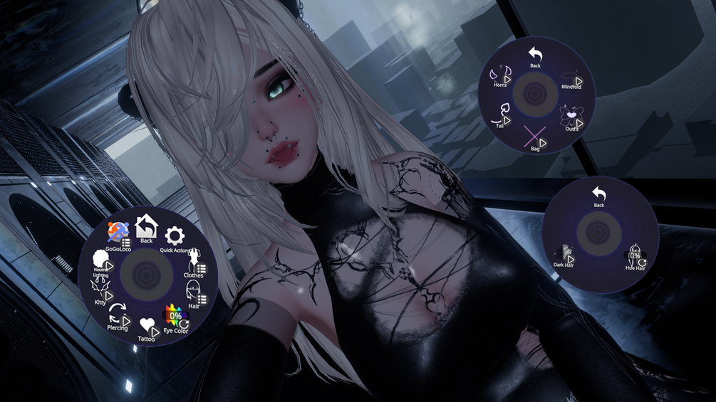 Toggles: Bodysuit, Dress, Bag, Tail, Horns, Dark Hair and Hue Shift.